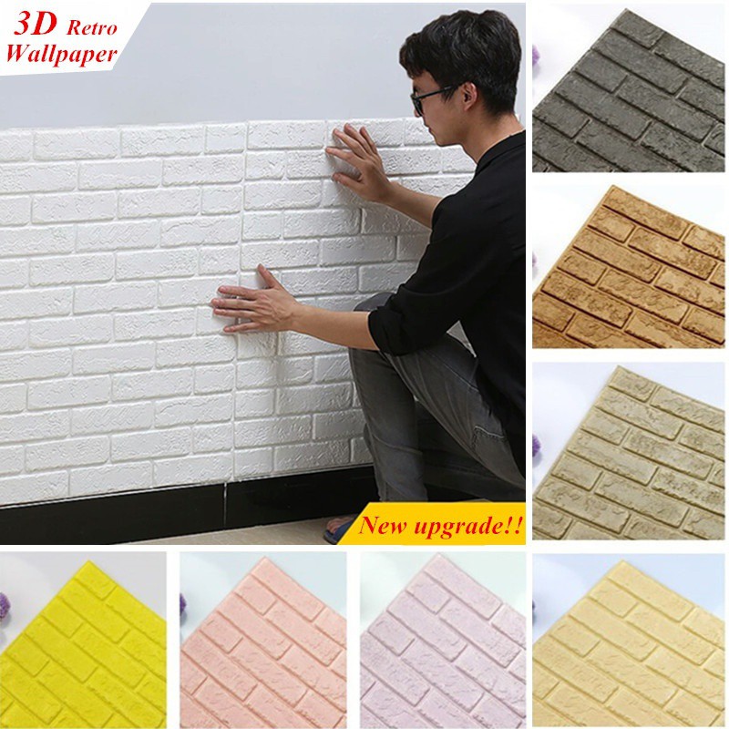 3d Wall Paper Bricks Wallpaper Pe Foam Decals Untuk Ruang Tamu Kamar Tidur 700 700mm Shopee Philippines